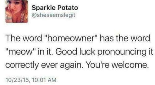 The Word Homeowner Has Meow In It Funny Tweet Pmslweb