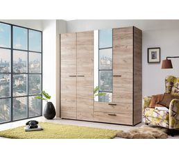 Armoire Twist 4 Portes 2 Tiroirs Avec Miroir Sonoma