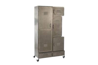 Armoire 4 Portes 2 Tiroirs Metal Argent Becky L 95 X L 47 X H 176 Neuf