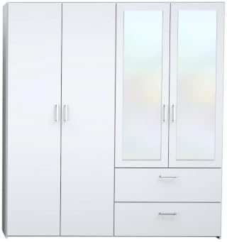 Armoire Twist 4 Portes 2 Tiroirs Avec Miroir Blanc