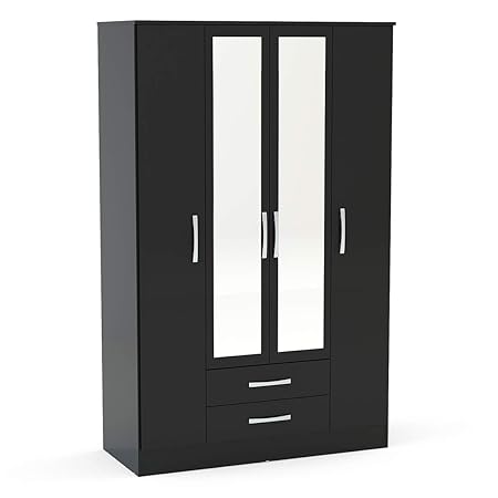 Birlea Lynx Armoire 4 Portes 2 Tiroirs Avec Miroir Noir