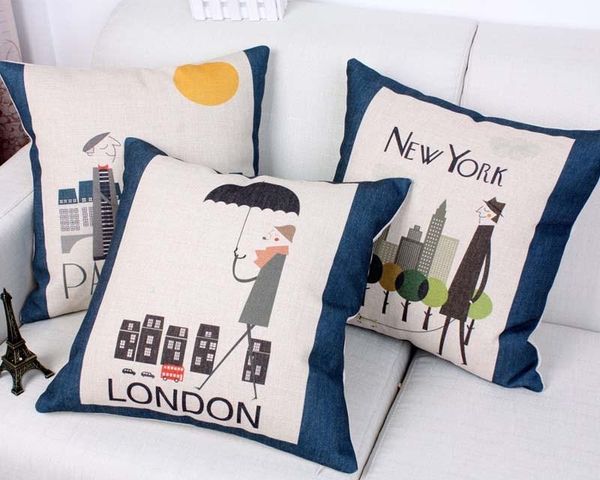 Grosshandel Kissenbezug Moderne Stadt London Paris New York Kissenbezug Bettwasche Baumwolle Kissen Kissenbezug Dekorative Couch Sofa Abdeckung 45x45cm