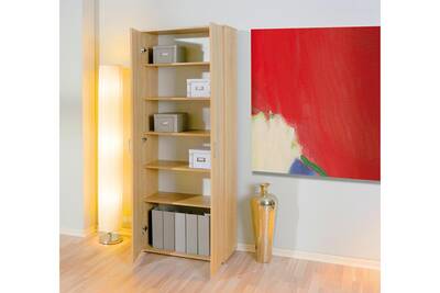 Armoire Rangement Bureau Etagere 2 Portes Bois Naturel Clair