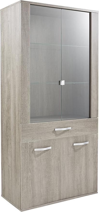 Demeyere Namur Vitrine 1 Tiroir 2 Portes Vitrees Coloris Chene Prata Panneau Particule 85 4x41 7x181 Cm