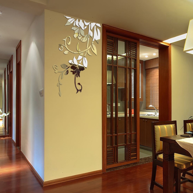 Stylish Mirror Wall Sticker Decal 3d Floral Vine Removable Home Room Decoration