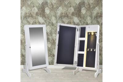 Armoire A Bijoux Avec Miroir A Pied Extra Large 6 Lumieres Led Stockage Blanc