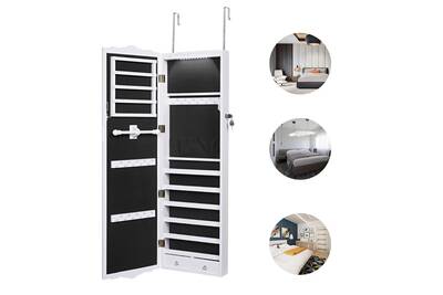 Langria Cabinet Armoire Bijoux Suspendus Verrouillable Avec Lumieres Led 3 Hauteurs Reglables Blanc