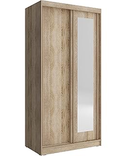 Armoire 2 Portes Coulissantes Avec Miroir Nero Largeur 120cm Hauteur 216cm Profondeur 60cm Chene Sonoma