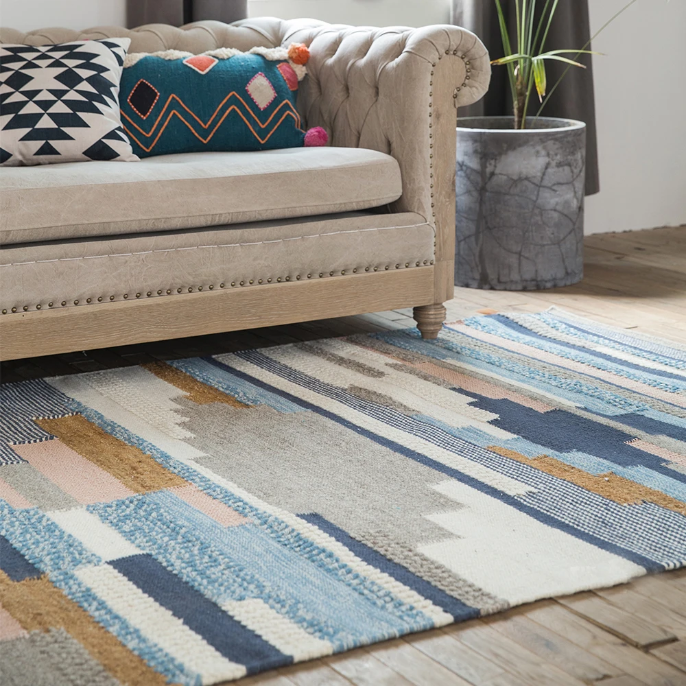 Accessorize Kelim Teppich Blue Mellow Blau Beige