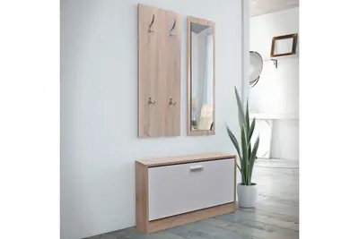 Meuble D Entree Moderne Rangement Vestiaire Avec Miroir