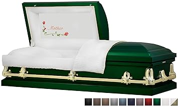 Titan Orion Hunter Green Steel Casket With Mother White Interior