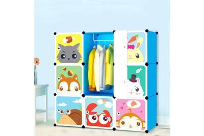 Freosen Armoire Penderie Enfant Bleu 9 Cubes Etagere