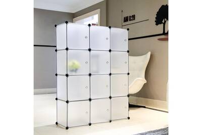 Songmics Armoire A Chaussures Modulable En Plastique Meuble De Rangement Penderie 16 Cubes Ouverts Pour Vetements Jouets Sacs Blanc