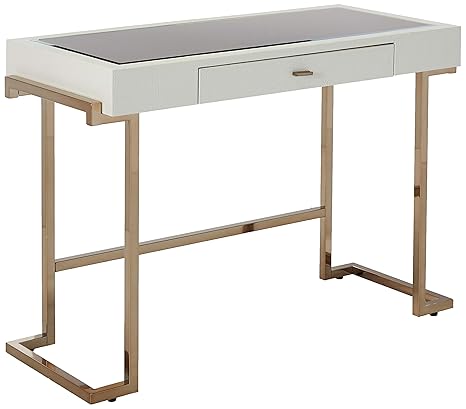 Details About Contemporary Modern Home Office Computer Desk With Metallic Legs In White Gold