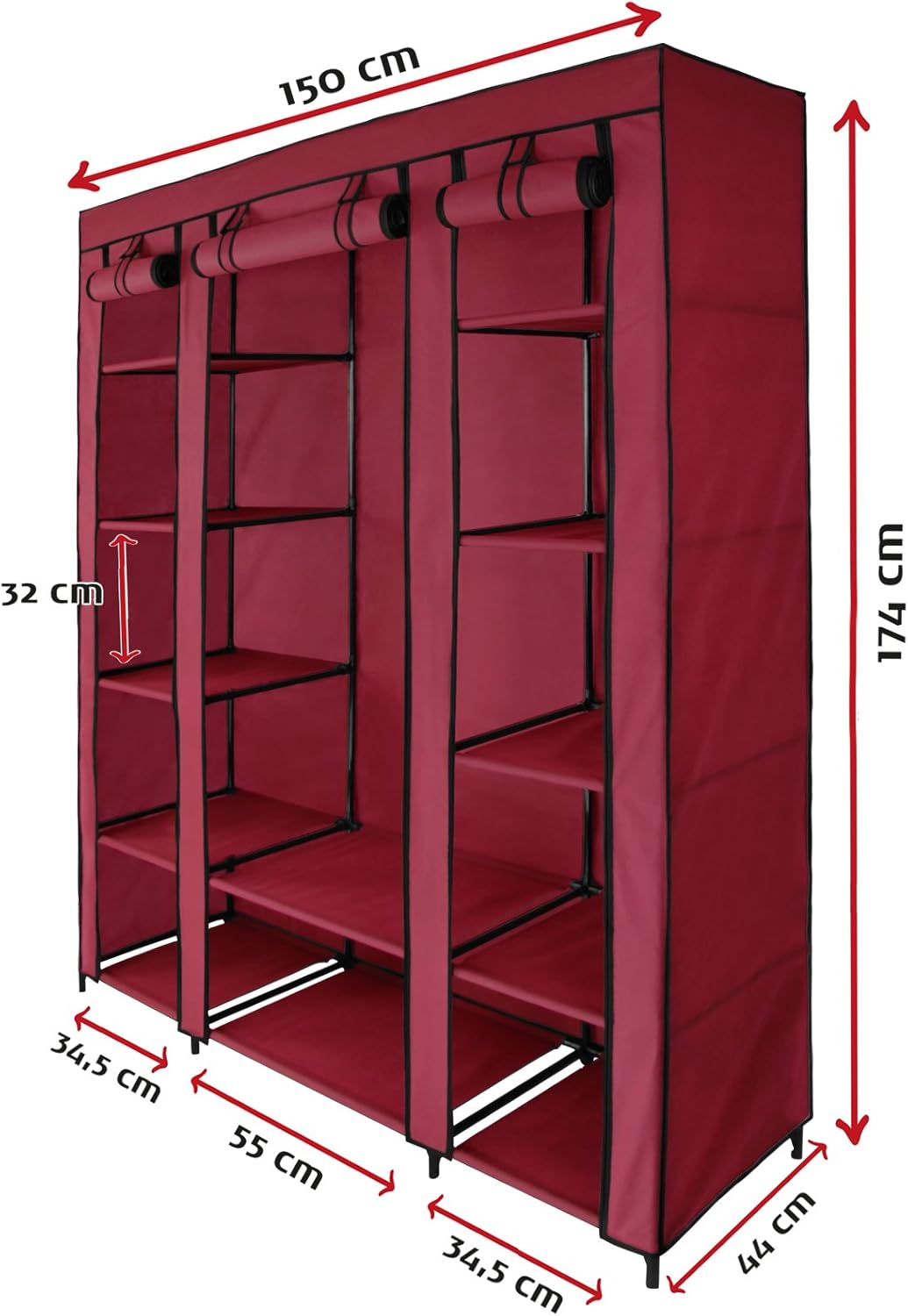 Bb Sport Armoire Penderie En Tissu 150 X 45 X 175 Cm Avec Tringle A Vetements Et Fermeture Eclair Couleur Cerise