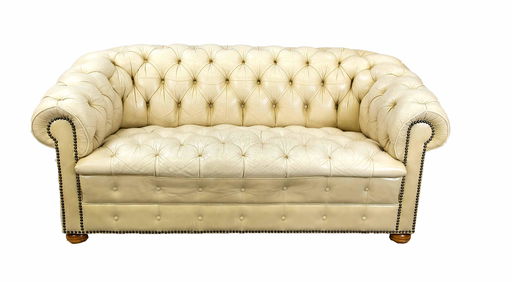Chesterfield Ledersofa 3 Sitzer Beigfarbenes Leder