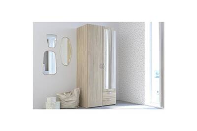 Armoire De Chambre Varia Armoire 2 Portes Miroir Decor Chene L 81 X P 51 X H 185 Cm