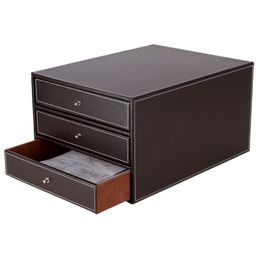 3 Couches En Bois En Cuir Ensemble De Bureau Classeur Meuble De Rangement Tiroir Boite Organisateur De Bureau Porte Documents Noir Za4637