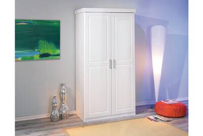 Armoire Penderie Dressing Rangement Chambre Moderne 2 Portes Pin Massif Blanc